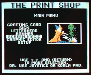 What you needed was software specifically designed to create posters and greeting cards without needing much effort on your part – a kind of… well, a computerised ‘print shop’ that wasn’t out to steal your Big Macs. Fortunately for you, a few enterprising individuals must have heard your pleas, because lo and behold, in 1984 software publisher Brøderbund released… well, ‘The Print Shop’, a program designed to create posters, greeting cards and other things without much effort on your part. If you had an Apple II that is. But you didn’t, because you were a tightwad who bought a Commodore 64 (or convinced someone else to) and so you had to wait an extra year before it came out for it (and the Atari 8-bit machines, also popular with tightwads after Jack Tramiel took Atari over and got into a price war with his former company). But you were happy to wait.