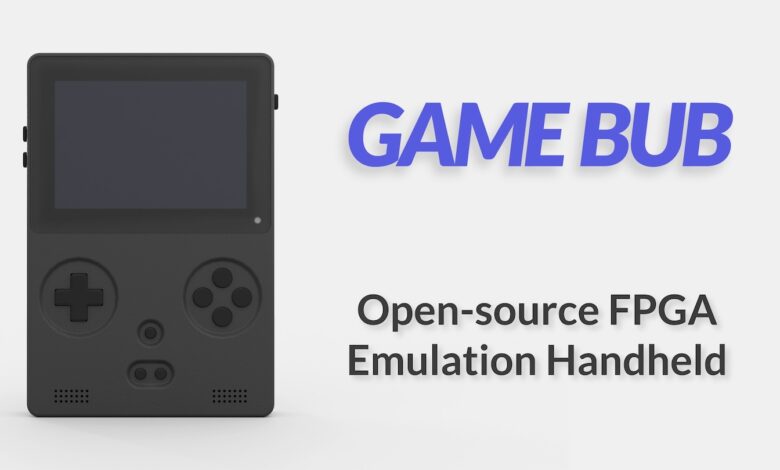 Game Bub has a custom-designed 6 layer PCB featuring a Xilinx XC7A100T FPGA with integrated memory, display, speakers, rechargable battery, GB/GBA cartridge slot, all packaged up in a custom 3D-printed enclosure.