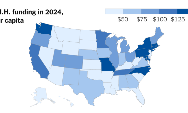 In the 2024 fiscal year, the N.I.H. spent at least $32 billion on nearly 60,000 grants, including medical research in areas like cancer, genetics and infectious disease. Of that, $23 billion went to “direct” research costs, such as microscopes and researchers’ salaries, according to an Upshot analysis of N.I.H. grant data.