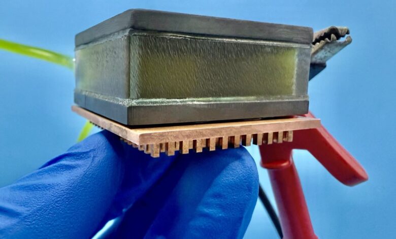 Duan and colleagues’ study uses charged iron atoms. The atoms absorb heat when they gain electrons via electricity, and release heat into a heat sink when they lose them.