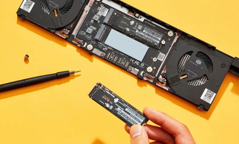 Today we’re launching the first new module for the Expansion Bay system in Framework Laptop 16: the Dual M.2 Adapter, enabling you to add additional storage drives or other high speed devices. When we first announced Framework Laptop 16, we shared that one of the core design goals was unlocking desktop-like modularity within a slim notebook form factor with high performance PCIe-interfaced modules. Our first modules were the Graphics Module with an AMD Radeon 7700S discrete GPU and the Expansion Bay Shell which provides cooling along with an open central area for modules to drop into. The new Dual M.2 Adapter is the first module that installs into the Expansion Bay Shell. You can pick it up today in the Framework Marketplace along with the Graphics Module Interposer that it uses to connect to the Mainboard; just remember to update your Framework Laptop 16 to the latest BIOS first for compatibility.