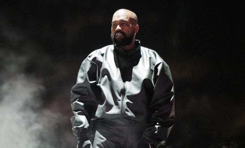 Rapper Ye, formerly known as Kanye West, performs onstage during a “Vultures 1” concert in Inglewood, California on March 14, 2024.