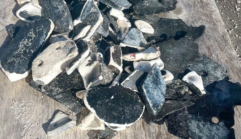 The objects she gathered left her hands covered in soot and grime. She estimated there are now “easily 200 pounds (91 kilograms)” of debris in her collection, stashed away in garbage bags labeled with the location where she picked up the debris. Plenty more still litters the beaches, she said.