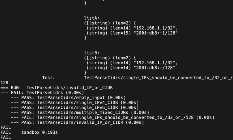Sometimes the model does get stuck. In our CIDR example, claude-3.5-sonnet came very close to all-clear on its second attempt, but proceeded to fail the same test case twice in a row. This is when I come in to look at the code, realize the regexp is not matching the final ‘1’ in “2001:db8::1”, and then provide that as an explicit hint to the model: