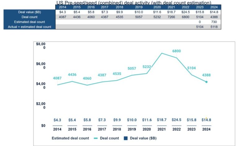 Nizar Tarhuni, EVP of research and market intelligence at PitchBook, said in a statement, “While 2024 saw a steady uptick in completed financings and the aggregate number of dollars invested – the proliferation of early-stage AI-focused transactions at hefty valuations masks a broader venture industry still facing corrective challenges.”